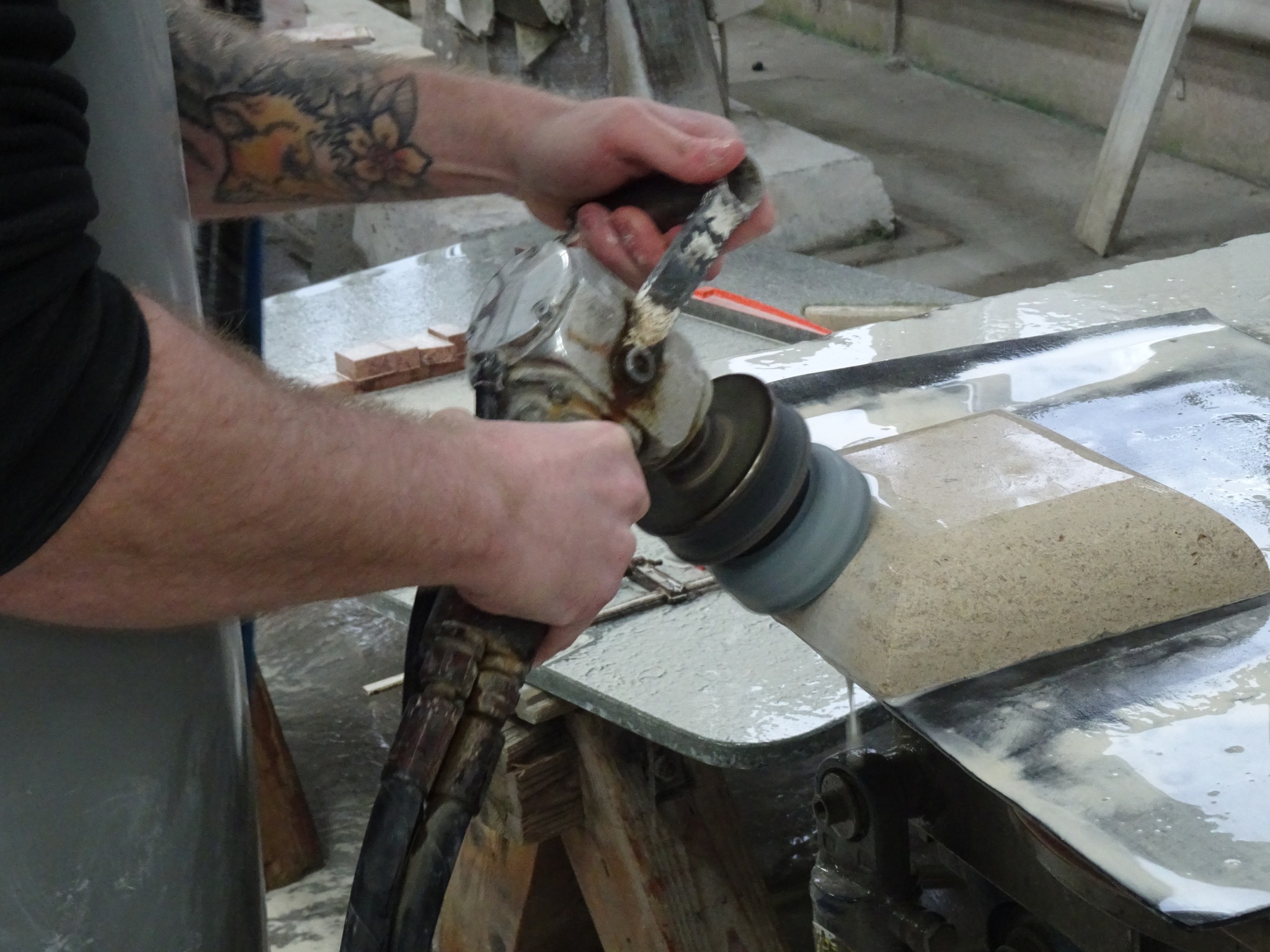 - Il intervient sur des matériaux naturels ou composites qu’il travaille manuellement et à l’aide de machines (traditionnelles et numériques). La variété de l’activité est due à la diversité des pierres utilisées : le sol français recélant plusieurs centaines de roches différentes : calcaires, marbrières, granits, grès.